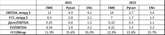 Поэтому, на наш взгляд, просто так сравнивать оценки долей ГМК, Русала и Эн+ между собой - не лучший способ для оценки данных компаний.