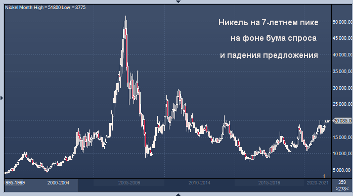 Ожидается, что никель, ключевой компонент аккумуляторов электромобилей, будет одним из видов сырья, которое больше всего выиграет от глобального перехода на низкоуглеродные источники энергии. Tesla Inc. в июле заключила сделку по поставке никеля BHP Group, поскольку производитель электромобилей стремится защитить себя от будущего кризиса поставок. Между тем, рост китайского производства нержавеющая сталь подогревает спрос на никель с другой стороны. Фьючерсы на нержавеющую сталь выросли на 2,7%, а на стальную арматуру - более чем на 4%.