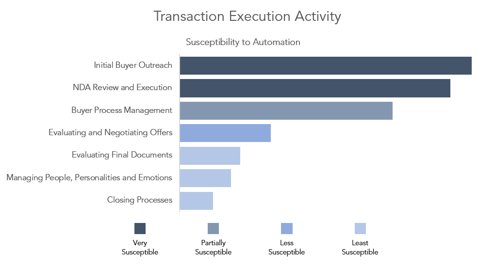 Хотя профессию инвестбанкира не назовешь массовой — в США в этой сфере трудятся 19,5 тысяч человек — нехватка кадров заставляет задумываться об алгоритмических альтернативах. По крайней мере, там, где речь идёт о тривиальных задачах вроде создания слайдов и формирования типовых документов. "МакКинси" видит потенциал алгоритмизации и для менее шаблонных процессов: