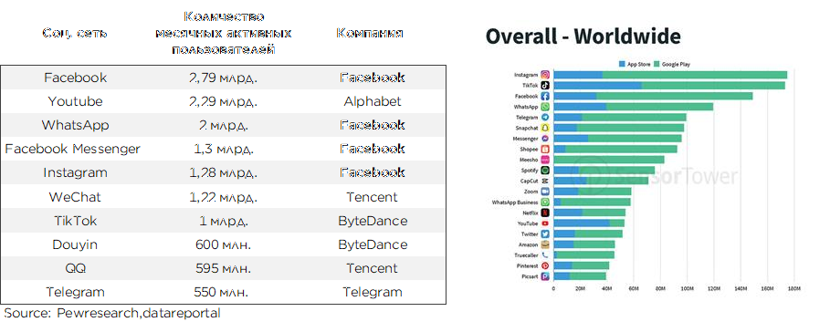 Гигант на рынке социальных платформ. Среди топ-5 социальных платформ по количеству месячных активных пользователей – 4 принадлежат компании Meta Platforms. При этом постоянные улучшения пользовательского опыта позволяют и дальше увеличивать пользовательскую базу. Так, в 4 квартале 21 года Instagram стал самым скачиваемый приложением в мире – лучший квартал для приложения с 2014 года.