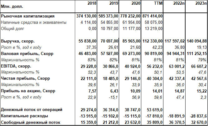 Ключевым для нашей оценки является мультипликатор P/E 2023E на уровне 23.1х, что подразумевает целевую цену на уровне 379,9 долл. США (потенциал роста в размере 19%).
