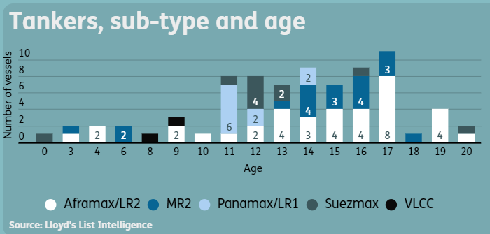 Деление судов «Совкомфлота» по подтипу и возрасту. Источник: Lloyd’s List Intelligence