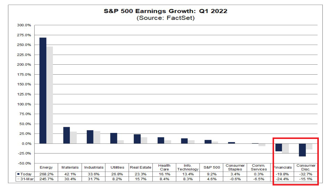Поэтому стоит рассмотреть еще несколько моментов. Два сектора в S&P 500 уже ушли в отрицательную динамику: финансы и потребительские товары выборочного спроса.