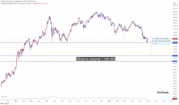 Рынок криптовалют, как и фондовый рынок находится в среднесрочном нисходящем тренде. Снижение рынков связано с цикличностью, ужесточением денежно-кредитной политики ФРС и нарастающими геополитическими рисками во всем мире. Учитывая вышеперечисленные факторы, можно выдвинуть предположение о возможности более глубокой коррекции рынков, которая даст перспективы поиска хороших инвестиционных идей. Основным навыком любого инвестора является терпение, поэтому на падении рынков нужно дожидаться лучших цен.