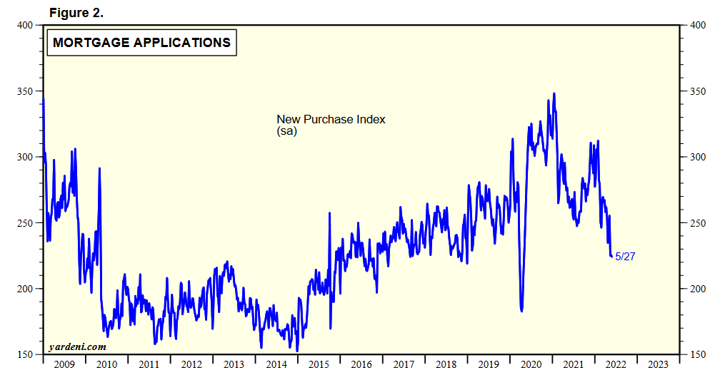Резкий рост ипотечных ставок вызвал довольно ощутимое падение спроса на ипотечный кредит. Число заявок за 21-27 мая было на 14% ниже, чем годом ранее, и вернулось на уровни 2016-2018. Национальная ассоциация пишет, что спрос в основном поддерживает верхний сегмент покупателей (с высокими доходами). Менее обеспеченные семьи уже столкнулись с проблемой доступности недвижимости.
