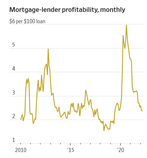 ”The Wall Street Journal” сообщает, что ипотечные организации уже начали сокращать персонал. Рентабельность в этой сфере быстро падает: