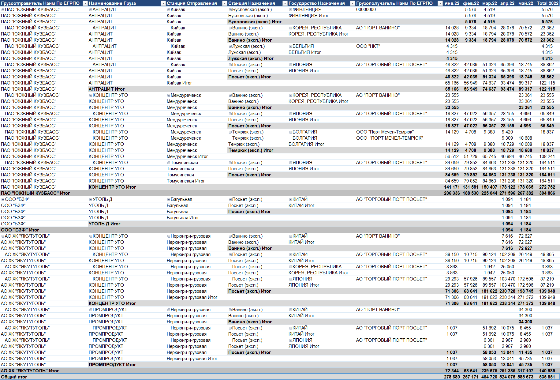 3) Сибуглемет (Новая Горная УК). СУМ не новый участник, но провел ребрендинг после наложенных на компанию санкций. Компания сейчас в довольно сложном положении в связи с невозможностью продавать свой высококачественный уголь на крупные компании. Но вопреки этому, пока отгрузки остановились только на Европу. То, что вижу на рынке, это большой демпинг со стороны НГУК - продают по самой низкой цене на рынке сейчас везде, куда можно продать. Кроме того, по данным участников, в дальневосточных портах лежит более 200 тыс.т. угля НГУК, который они не могут продать никуда. Если фантазировать, то по окончании СВО, СУМ мог бы стать логичной частью формирующегося металлургического кластера ЛДНР: Завод Ильича, Алчевский КХЗ, Енакиевский, Макеевские МК. Часть из них довольно современные и потребляют даже PCI, который производит СУМ.