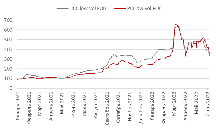 Цены на металлургический уголь показывают мощную коррекцию с мая. В фокусе Китай - который еще не оправился от локдаунов или который тормозит? Какие мнения? Снижается спрос на сталь?