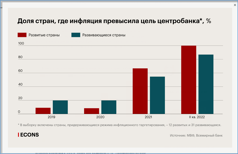 От целевых уровней, установленных центробанками, инфляция оторвалась ещё в 2021 году.