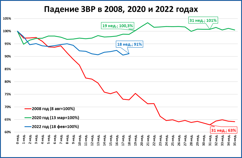 Никакого провала за 18 недель (с пика 18 февраля 2022 года) в ЗВР не наблюдается.