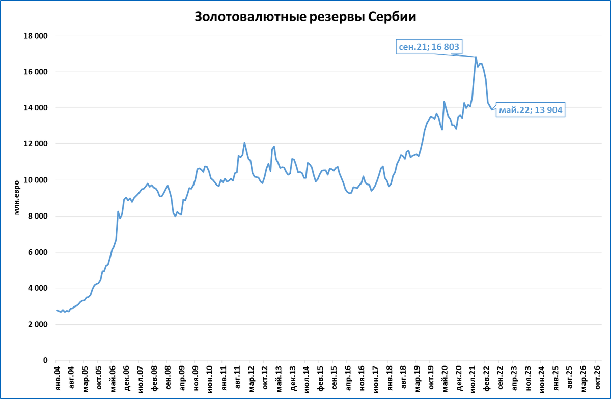 1. Быстро погасить инфляцию, сжигающую сербские доходы и сбережения. Для чего банковскую ставку следовало бы решительно, за 2-3 шага, сделать реально положительной, то есть, заметно выше инфляции. Конечно, те граждане и предприятия, у которых сегодня есть возможность кредитоваться под реально сильно отрицательную - минус10% годовых! - ставку и расплачиваться с банками в будущем сильно полегчавшей монетой, будут очень недовольны. Но зато деньги всех остальных граждан и предприятий прекратят обесцениваться. И, подсказывает опыт, автоматически укрепится динар, так что исчезнет нужда тратить на его поддержку золотовалютные резервы страны. (ЗВР Сербии с сентября 2021 по май 2022 года уже сократились на 17%, с 16,8 до 13,9 млрд. евро.)