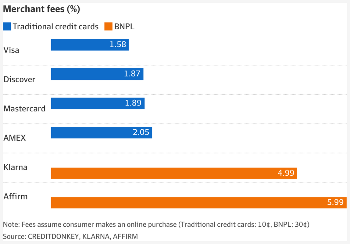 Такая щедрая кредитная политика приводит к тому, что внушительную долю их клиентов составляют сабпрайм-заёмщики. Те, с кем традиционные банки опасаются связываться. Кредитное бюро ”TransUnion” оценивает их долю в 43%, эксперт Маршалл Лакс — в 2/3 от общего числа. Это ставит сервисы рассрочки в уникальное положение: мейнстримная финансовая индустрия, получив в 2007-08 горький опыт, отказалась от этого сегмента. А те, кто не отказался, держат объемы такого кредитования на минимуме, создают под него внушительные резервы и дерут с заёмщиков немилосердный процент, компенсирующий повышенный риск.