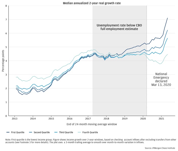В лучшем случае стартапы могут сослаться на пандемийную рецессию-2020, в которой их скоринговые модели показатели себя достойно, не допустив угрожающего роста неплатежей. Но рецессия-2020 была совсем не обычной. Более того, мы можем даже назвать ее уникальной. И уникальность ее заключается в том, что доходы наименее обеспеченных слоёв населения не только выглядели лучше, чем у остальных групп (обычно динамика, наоборот, самая плохая) — но даже не останавливали свой рост:
