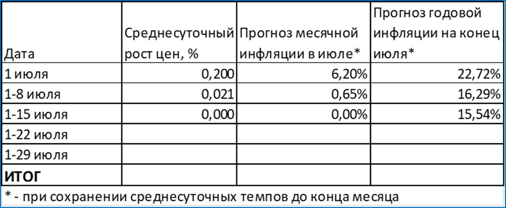 Среднесуточный рост цен с 1 по 15 июля составил 0%.