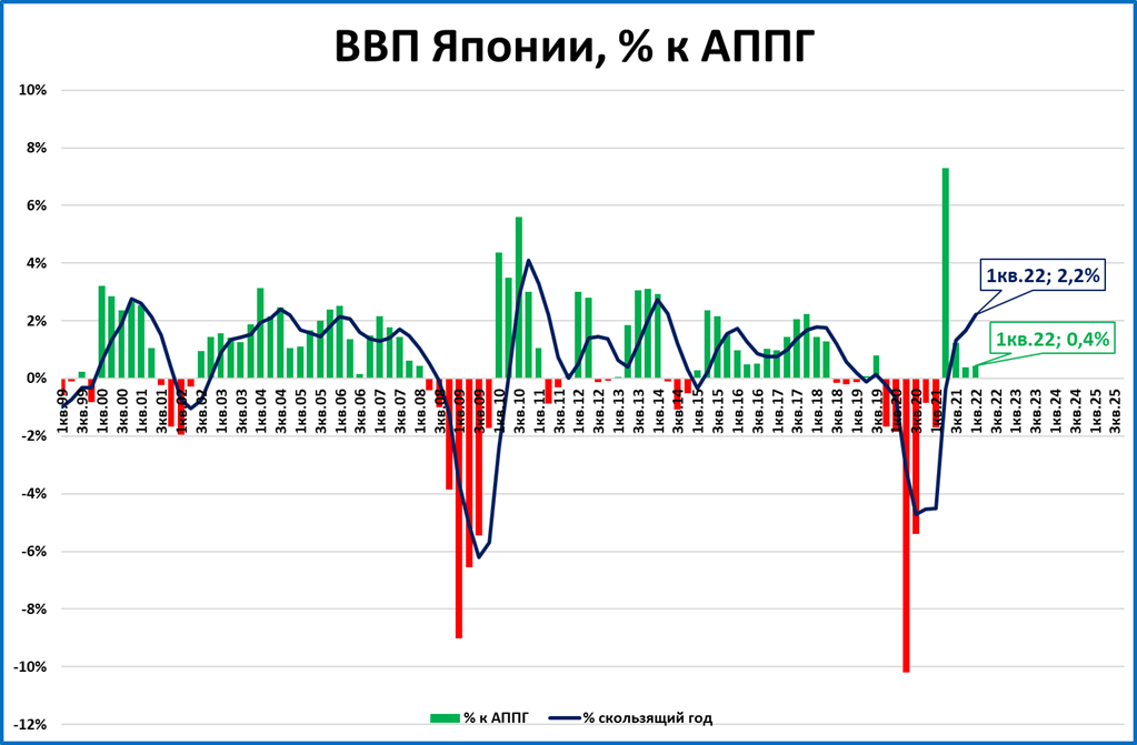 Мы ожидаем дальнейшего замедления темпов ВВП Японии.