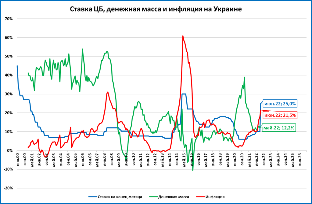 Инфляция на Украине в мае (18%) и июне (21,5%) продолжала расти и превзошла аналогичный показатель в России (17,1 и 15,9%, соответственно).
