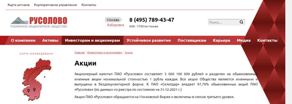 Говоря про Селигдар, нельзя не отметить, что он владеет Русоловом. И это единственный производитель «оловянного концентрата» в России. К слову, акции Русолово также обращаются на Мосбирже.