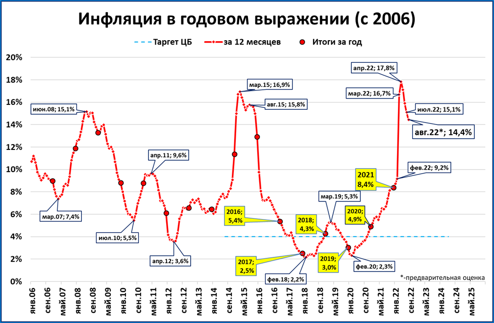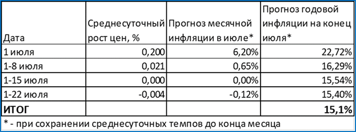 Инфляция: 15,1% по итогам июля, ожидаем 14,4% по итогам августа