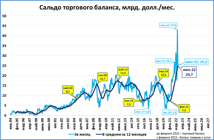 ● Сальдо торгового баланса в июле (25 млрд. долларов) стало максимальным для этого летнего месяца за всю историю.