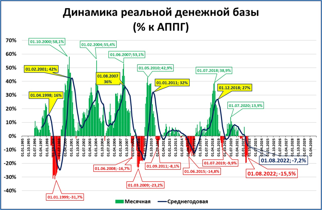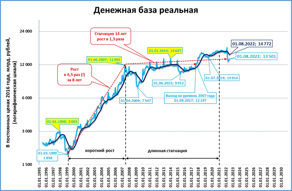 Стагнация последних 14-ти лет находит своё объяснение на графике реальной денежной базы.