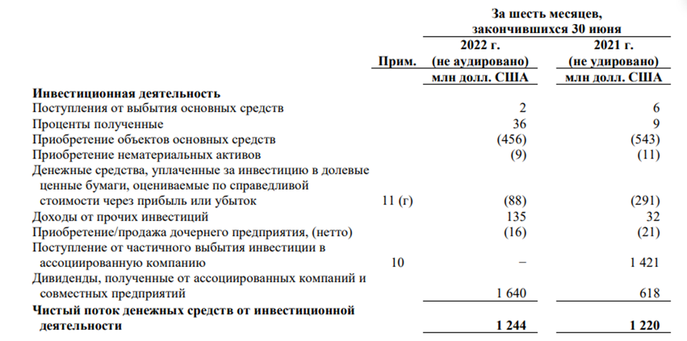 За полгода на капитальные затраты компания потратила $0,46 млрд. Они были преимущественно направлены на поддержание действующих производственных мощностей. Вообще последние годы на эти цели тратиться примерно $1 млрд/год.
