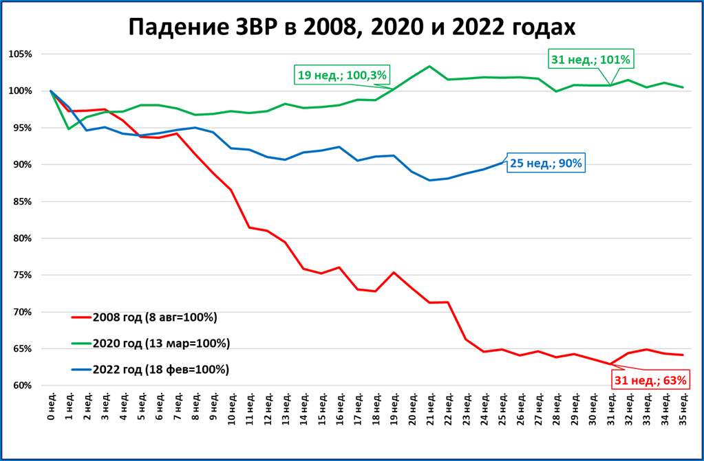 Это нейтральная информация. Темпы падения ЗВР сейчас - это нечто среднее между сценариями 2008 и 2020 годов.