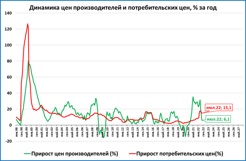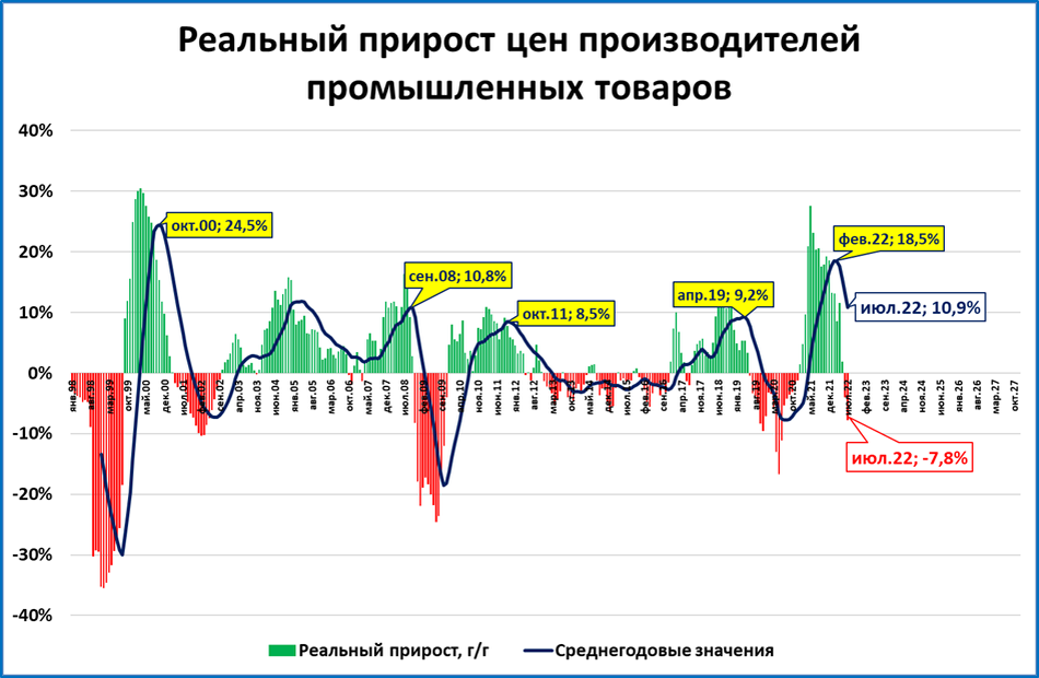 Хорошая новость, что падение цен производителей пока не такое сильное, как в 2019 и 2020 годах. Позитивным сигналом будет замедление темпов падения в августе или сентябре.