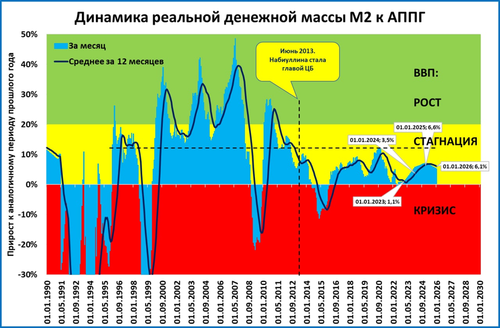 Примечание: Указаны среднегодовые темпы реальной денежной массы и ВВП.