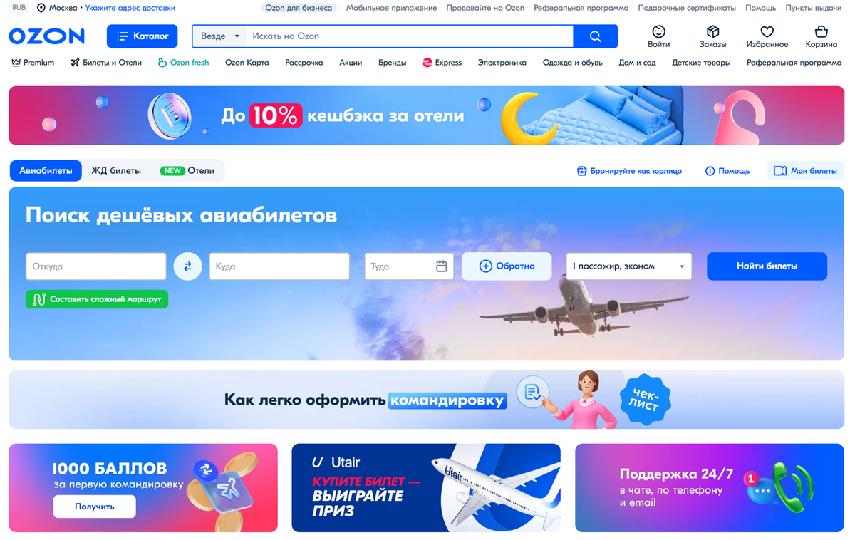 Потихоньку растёт комиссия от направления OZON TRAVEL.