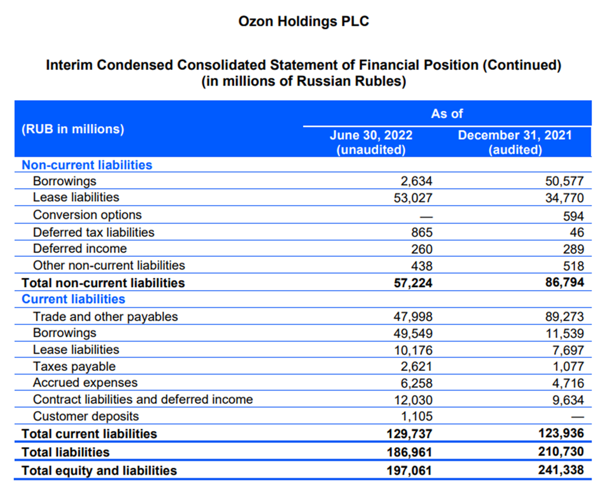 Говоря о долге нельзя не отметить, что Ozon из-за санкций не смог расплатиться с иностранными держателями облигаций, которые потребовали вернуть деньги после прекращения торгов компании на бирже Nasdaq. Т.е. Озон допустил технический дефолт. Но по заявлениям компании, менеджмент уже практически договорился о реструктуризации долга в течение этого года.