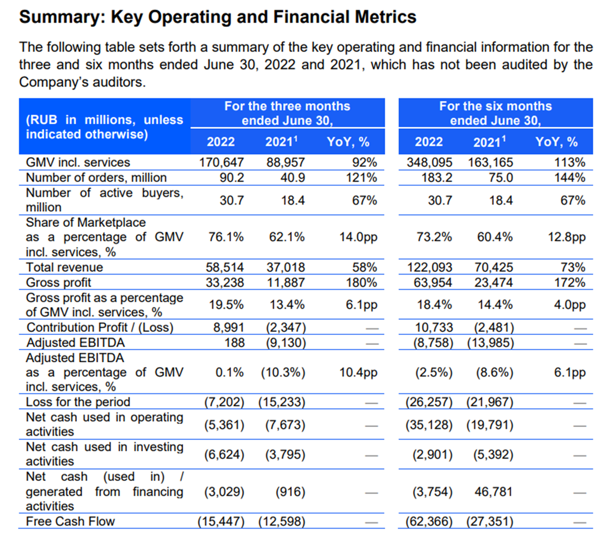 Общий объем товарооборота за квартал вырос на 92%. Количество заказов выросло на 121%. Число активных покупателей выросло на 67% и уже превысило 30 миллионов человек. Растёт и доля маркетплейса в продажах, на текущий момент она уже превышает 76%.