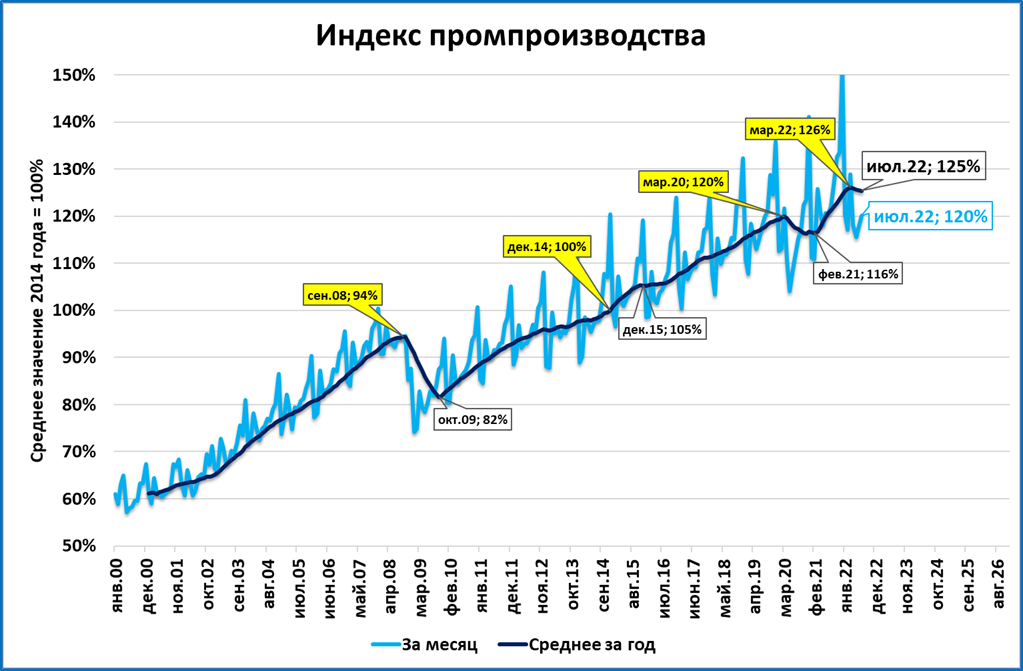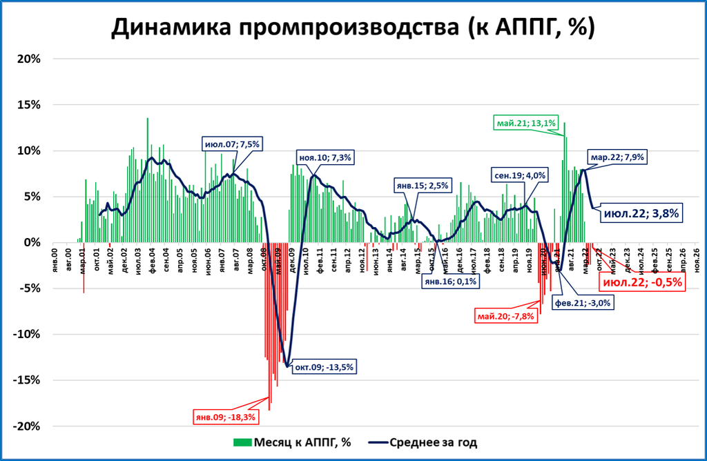Падение промпроизводства в июле (-0,5%) стало минимальным за последние 4 месяца. Фактически, падение прекратилось.