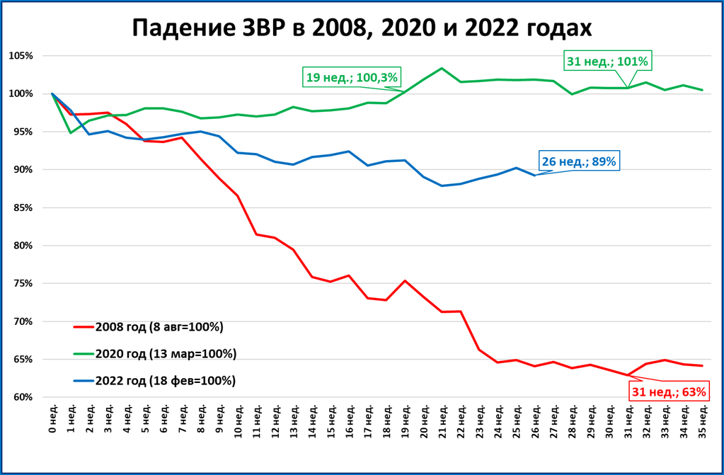 Никакого провала за 26 недель (с пика 18 февраля 2022 года) в ЗВР не наблюдается.