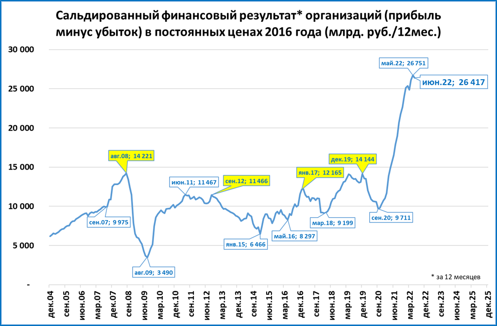 За последние 12 месяцев прибыль составила 26,4 трлн. рублей.