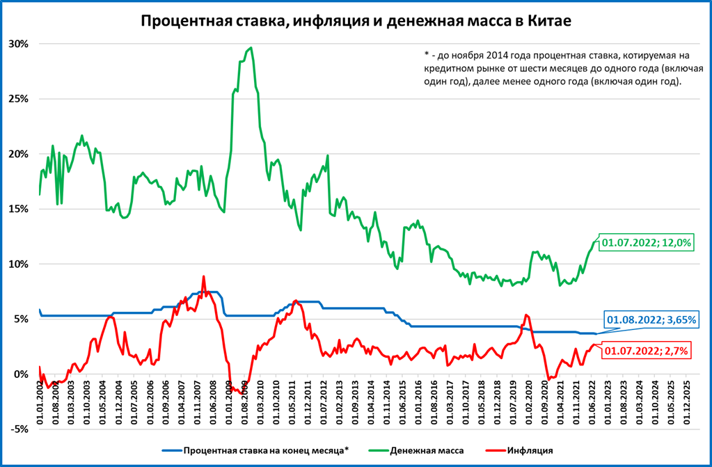 Денежная масса в Китае (+12%) растёт намного более высокими темпами, чем инфляция (2,7%), а значит растёт в реальном выражении. Это создаёт хорошие условия для восстановления экономики Китая и незначительные изменения ставки серьёзно не повлияют на ситуацию.