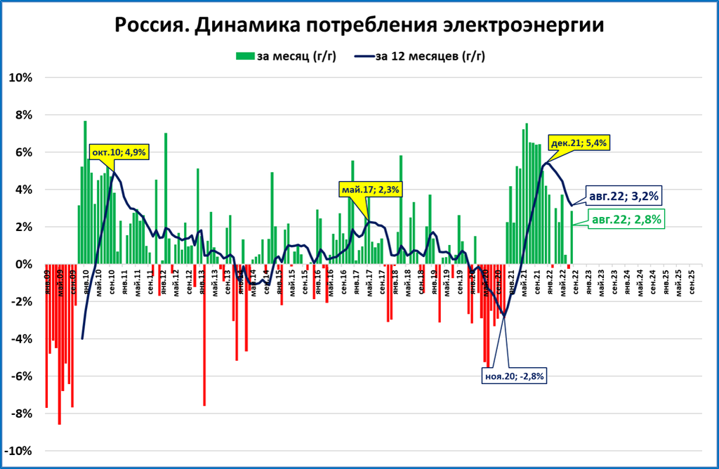 ● Потребление электроэнергии, в отличие от кризиса 2020 года, не падает, а продолжает расти.
