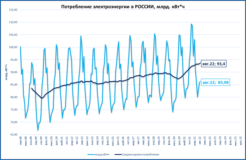 В августе потребление электроэнергии составило 86 млрд. кВт*ч.
