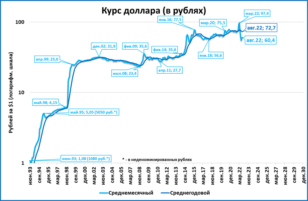 После резкого ослабления рубля в феврале и марте (до 97,4 руб. за доллар), в апреле-июне произошло ещё более резкое укрепление российской валюты. Небольшое ослабление рубля в июле и августе пока не меняет картину принципиально.