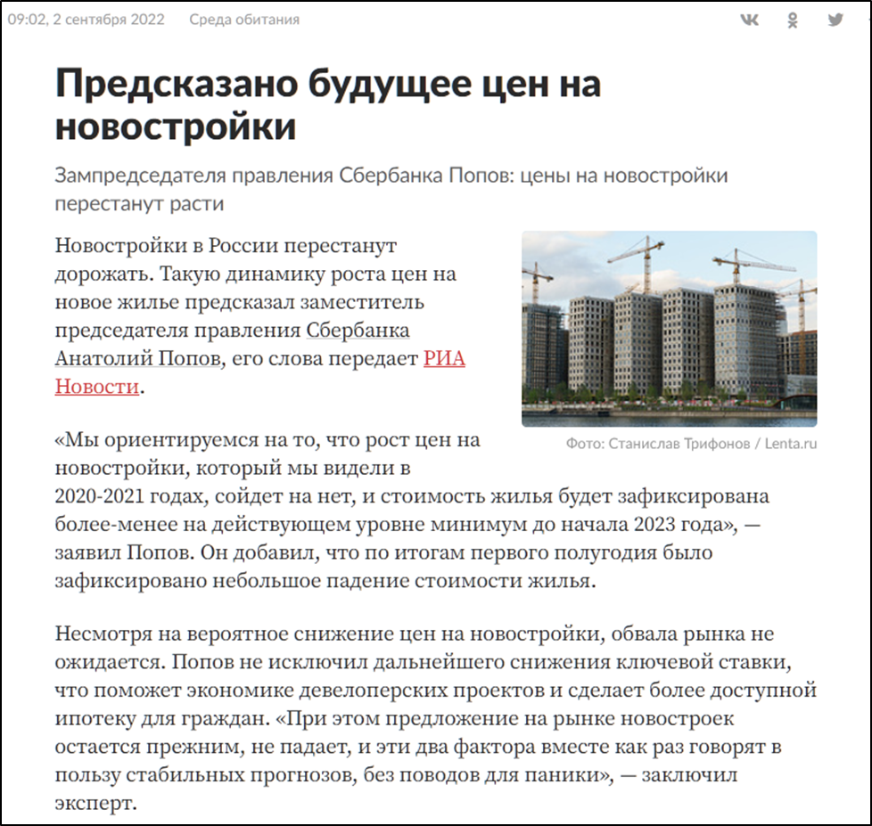 Например, Зам пред правления Сбербанка считает, что до конца 2022 года цены не обвалятся, но и дорожать не будут. Т.е. у застройщиков уйдёт один из факторов роста выручки, который был последние два года.