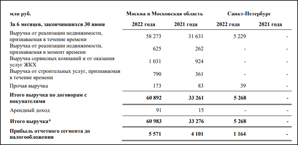 Кстати, если посмотреть на выручку, то она меньше, чем объем продаж, это объясняется тем, что большая часть квартир продаётся через эскроу счета, выручка по ним признаётся не сразу, а постепенно размывается по времени.