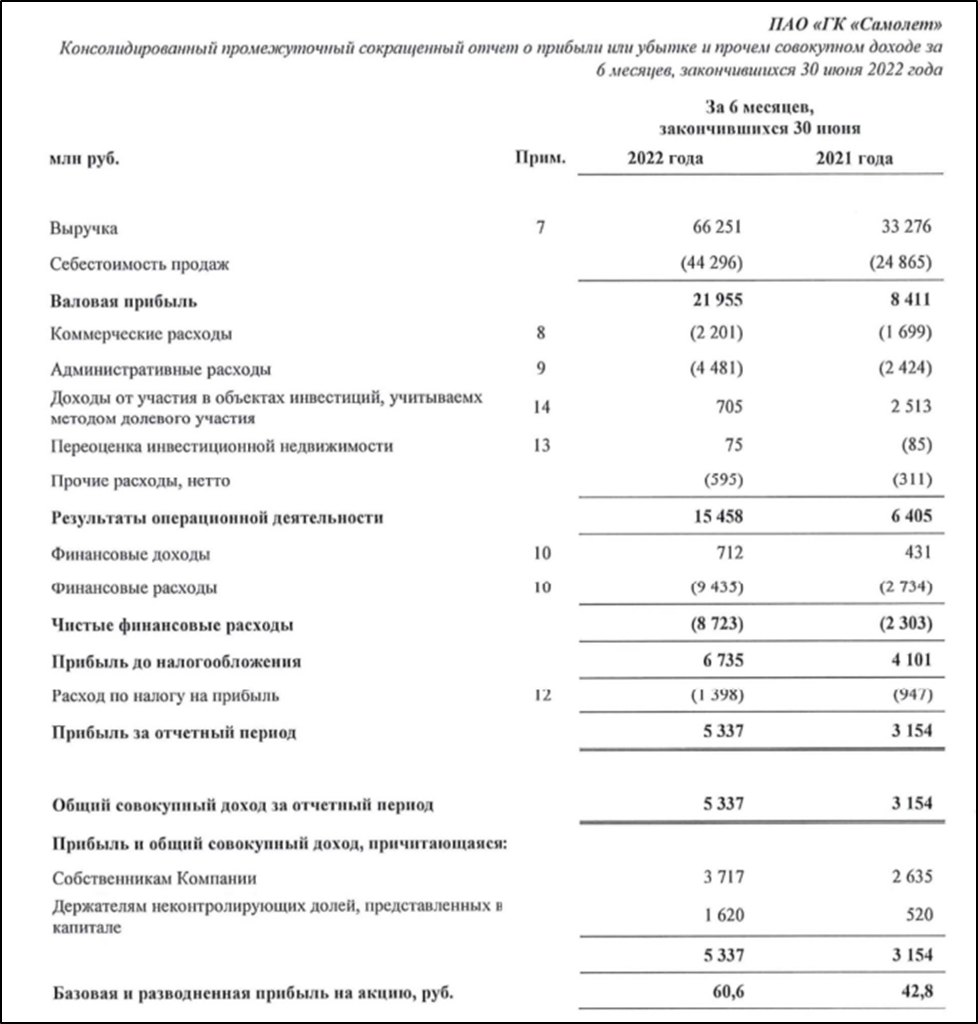 Самолёт опубликовал довольно сильные результаты по итогам полугодия.