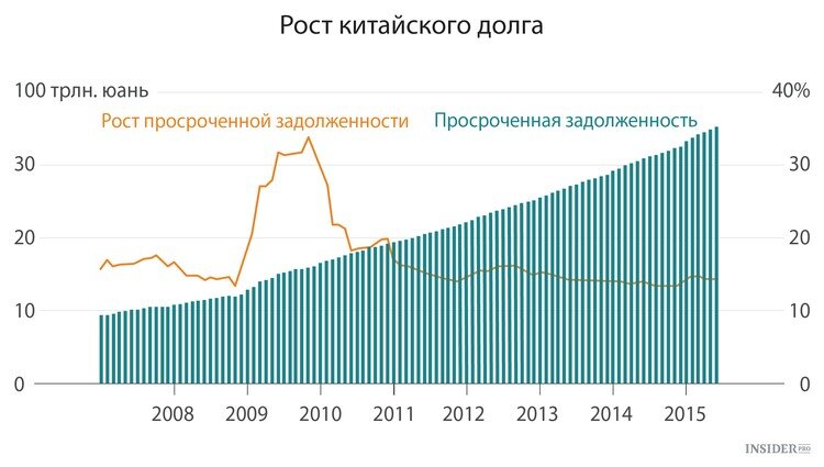 В принципе даже нынешние уровни задолженности такой мощной экономике, как китайская, гасить по силам, пусть даже и стоимость обслуживания долга в частном секторе уже достигла около 20% от доходов (для сравнения, в США — 14%). Опаснее здесь скорее темпы прироста, которые, судя по-всему, выходят из-под контроля. А еще одной проблемой является неэффективность размещения капитала — во время кредитного бума долги набрали далеко не только лучшие компании на рынке. Более трети корпораций в КНР страдают от избыточного производства, а прибавочная стоимость у одних и тех же компаний год от года сокращается.