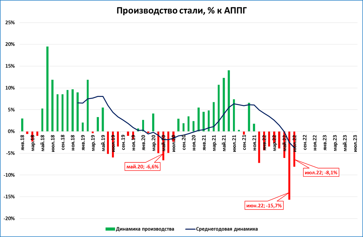 Сразу насторожился: это означало бы, что падение в производстве стали ускоряется. К счастью, всё оказалось не так.