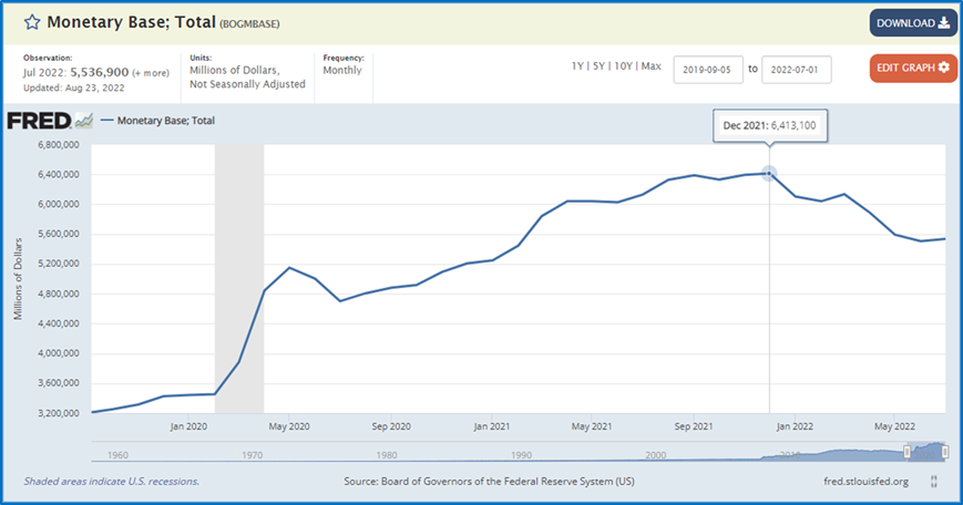 Федрезерв осенью анонсировал сжатие денежной базы и проводит его в жизнь. Так, денежная база с 6,4 трлн в декабре сократилась до 5,5 трлн. в июле (900 млрд. за 7 месяцев; более 100 млрд. в месяц).