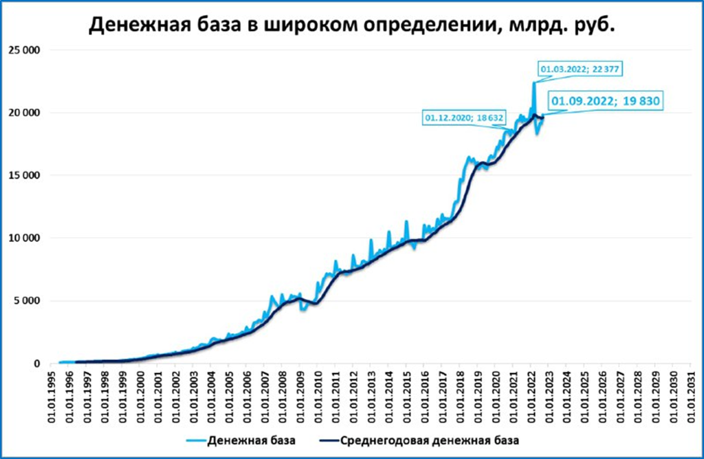 Широкая денежная база: номинальный рост, реальное падение