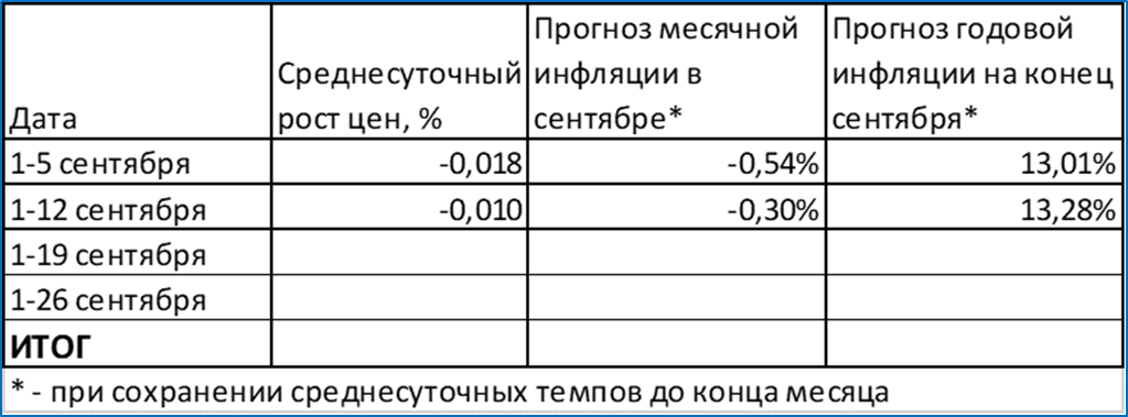 Среднесуточный рост цен с 1 по 12 сентября составил -0,01%.