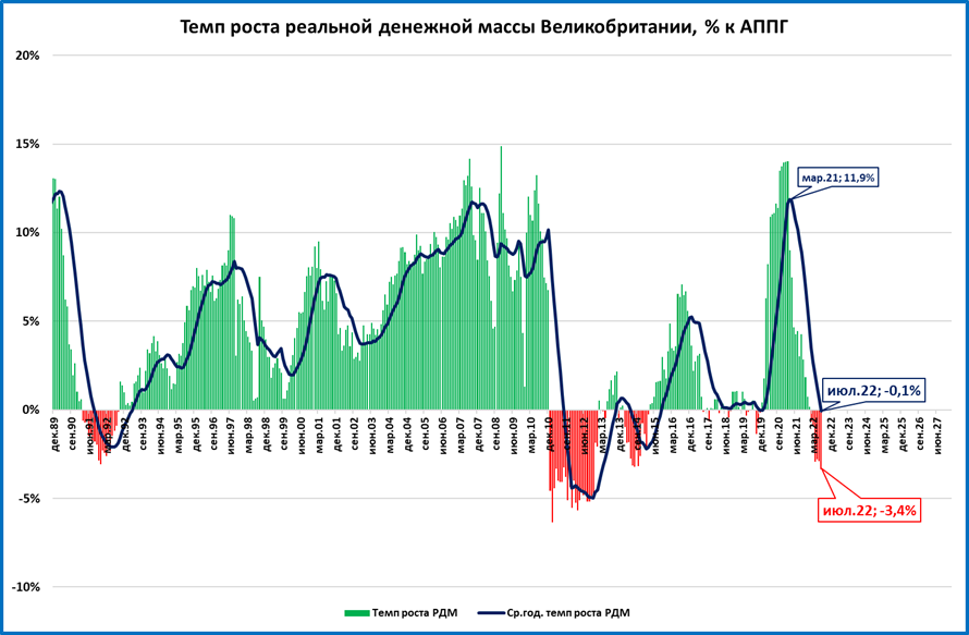 Отличие: рост денежной массы в Великобритании ускоряется (с 5,4% в феврале до 6,4% в июле), а в США и Еврозоне – замедляется.