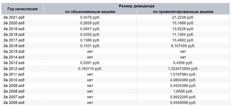 Как видим, по привилегированным акциям дивиденд прописан в Уставе, и он получается намного выше, чем по обыкновенным акциям. За прошлый год выплаты были в июле 2022г. И составили 21,22 руб по префам. Это более 16% к текущей цене акции.