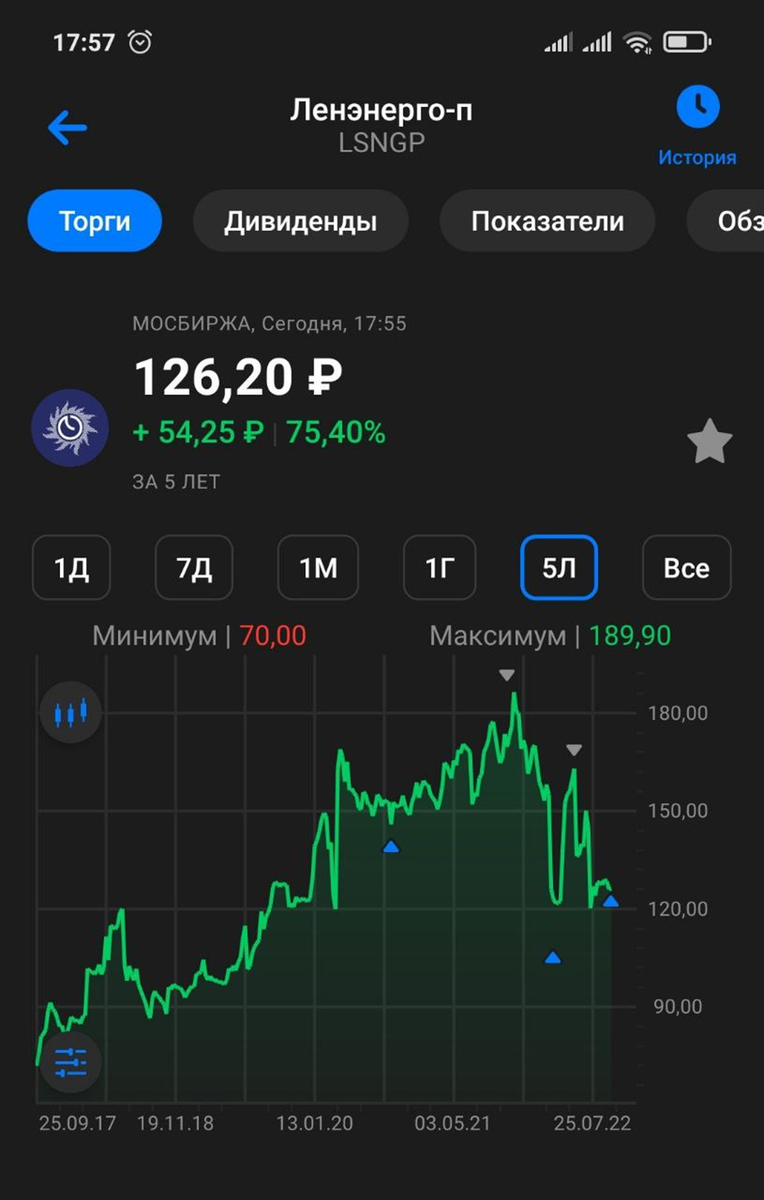 График цены привилегированных акций Ленэнерго