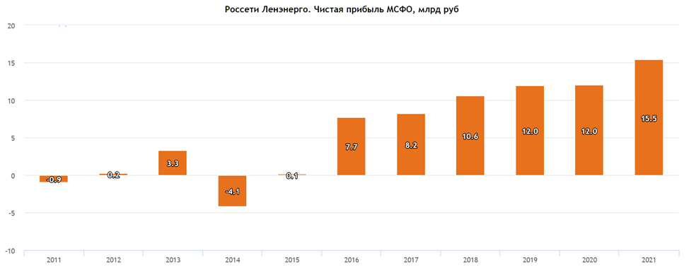Особенно выделятся резкий рост выручки, EBITDA и чистой прибыли в 2021 году. Это объясняется существенным увеличением выручки по технологическому присоединению и ростом выручки по передаче электроэнергии, связанный с ростом электропотребления.